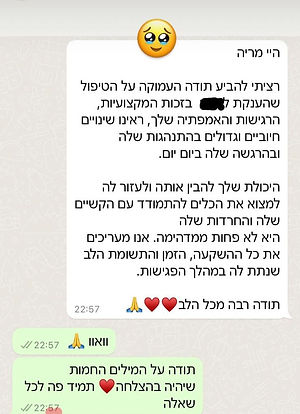 הסיפוק הכי גדול שלי, זה כשלקוחות אומרים לי כמה הטיפול מאפשר להם לחזור לשגרה מיטיבה ולהתמודד עם אתגרי החיים באפקטיביות.